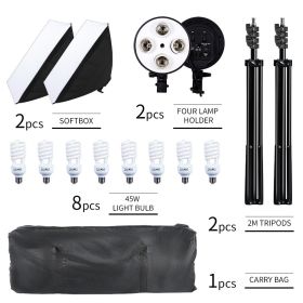 Photography Softbox Lightbox Kit 50x70CM Four Lamp Softbox E27 Holder With 8pcs 20W Bulb Soft Box Accessorie Photo Studio Video (Color: 8X45W light bulbs)